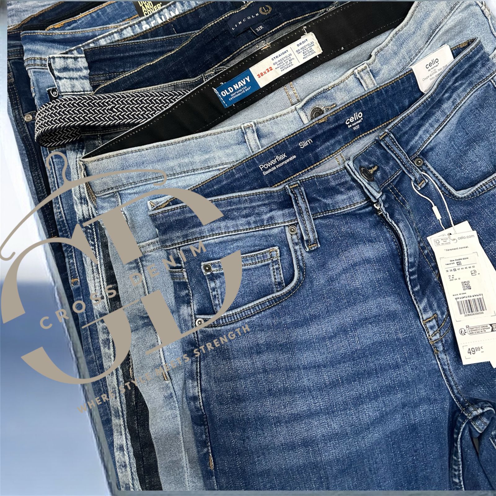 Crosshatch Mens New Embossed Techno Straight Fit Jeans Stone Wash